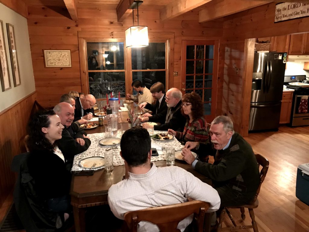 As is our custom at Davenant House events, we punctuate our days with delicious food and drink together and prayers and praise to God. Pastor Craig Beaton led us in evening prayer following dinner and morning and midday prayer on Saturday along with hymns chosen to reflect the season we were in, the 12 days of Christmas. Harmony of voices and the praises of God’s people filled the room at Davenant House as we sang Let All Mortal Flesh Keep Silent, Joy to the World, and O Come All Ye Faithful.